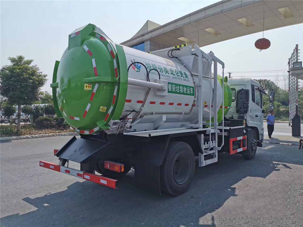 將桶裝餐廚泔水垃圾經專用提升架緩緩上提,在車頂部倒入車廂內(車箱可分為箱體和罐體),被投放的垃圾經過強有力的推板擠壓,在罐體內實現固液分離,被分離的液體進入罐體底部的污水箱,固體垃圾被壓縮儲存在罐體,體積變小,如此反復待裝滿后送**餐廚垃圾資源優化處理廠。